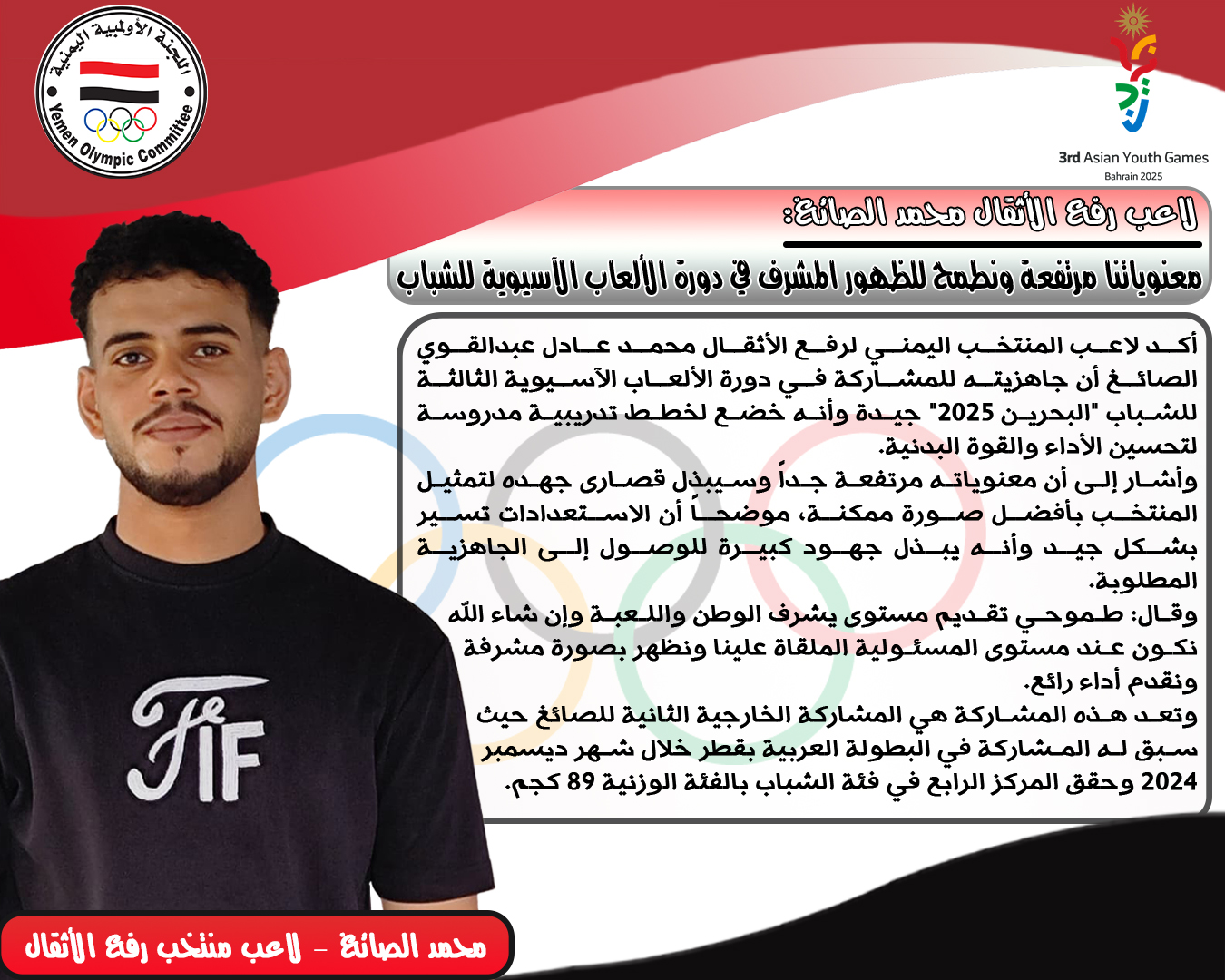 لاعب رفع الأثقال محمد الصائغ: معنوياتنا مرتفعة ...