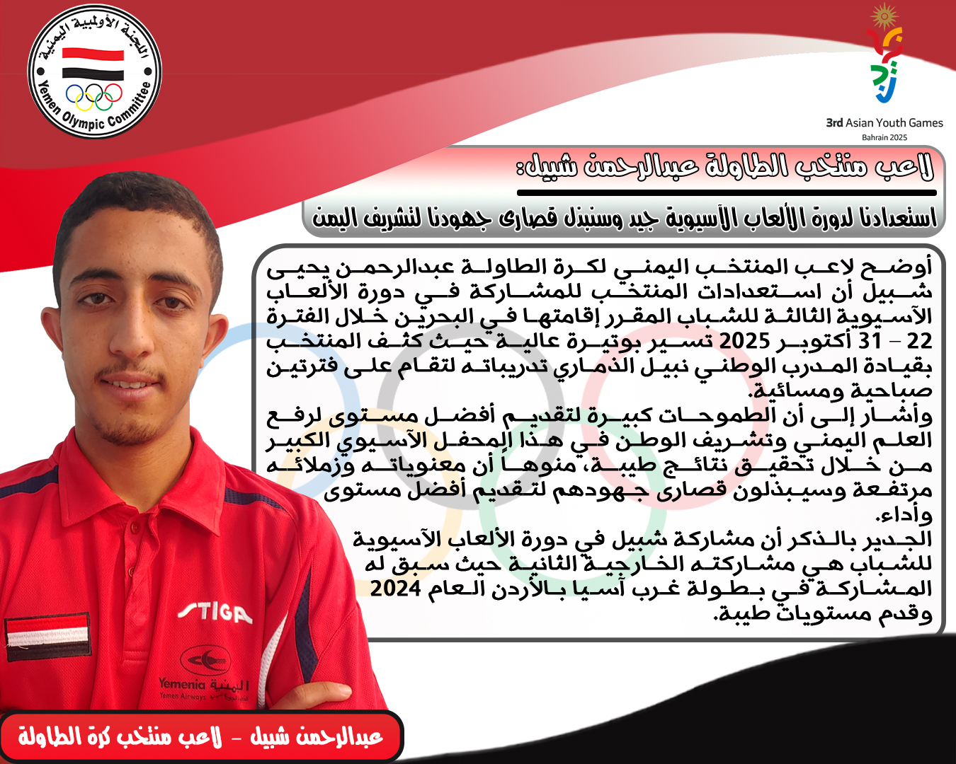 لاعب منتخب الطاولة عبدالرحمن شبيل: استعدادنا لد ...