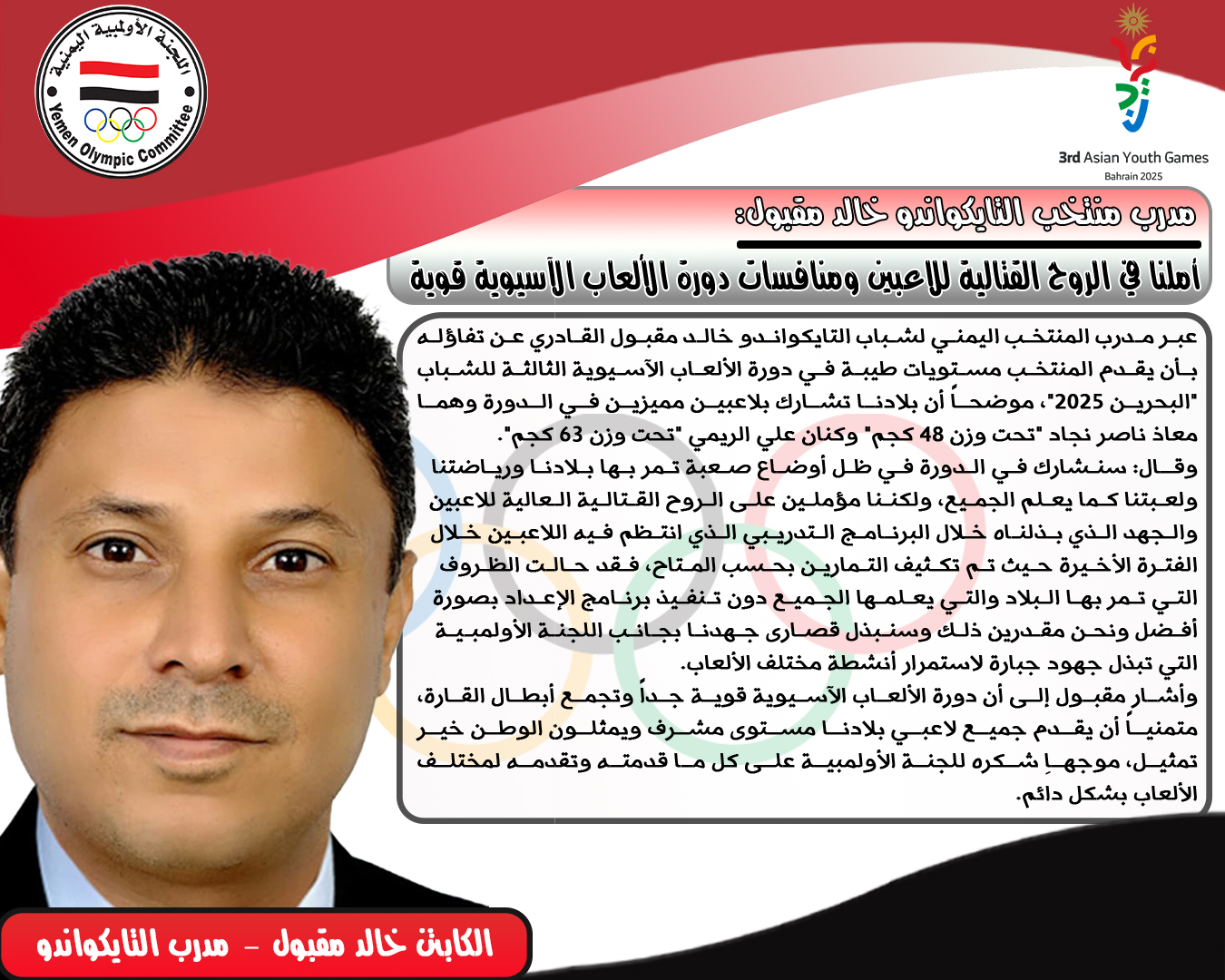 مدرب منتخب التايكواندو خالد مقبول: أملنا في الر ...