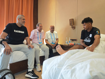 وعلى إثر ذلك خاض مؤنس امتحانه الصعب بلقاء الفائز من المباراة رقم(9) بين التركمستاني ستادروف ولاعب قرغيزستان أورانوف الذي كان حاضرا وتسيد البساط.ويخوض اللاعب علي خصروف نزال منتخبنا الثاني في الجيجستو الذي يشارك فيه4من لاعبي منتخبناغدا من جانب اخر بدات المنتخبات الوطنيه التي التحقت بالبعثه من معسكراتها الخارجيه في مصر والاردن تدريباتها استعدادا اخيرا لدخول منافسات الدوره في الطاوله والعاب القوي يوم غدا من جهته التقي الاخ محمد الاهجري امين عام اللجنه الاولمبيه واعضا البعثه الاداريه بالمنتخبات المشاركه واجهزتها الفنيه حاثا الجميع علي حسن تمثيل اليمن وبذل اقصى الطاقات وتقديم مالديهم من خبره و مستويات للارتقاء بالاداء والنتائج ورسم صوره مشرفه للرياضه اليمنيه التي تواجدت في هذا المحفل رغم ظروف الحرب.